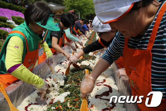 | 2015년 양평 산나물축제 현장에서 비빔밥을 만드는 모습 © News1 |